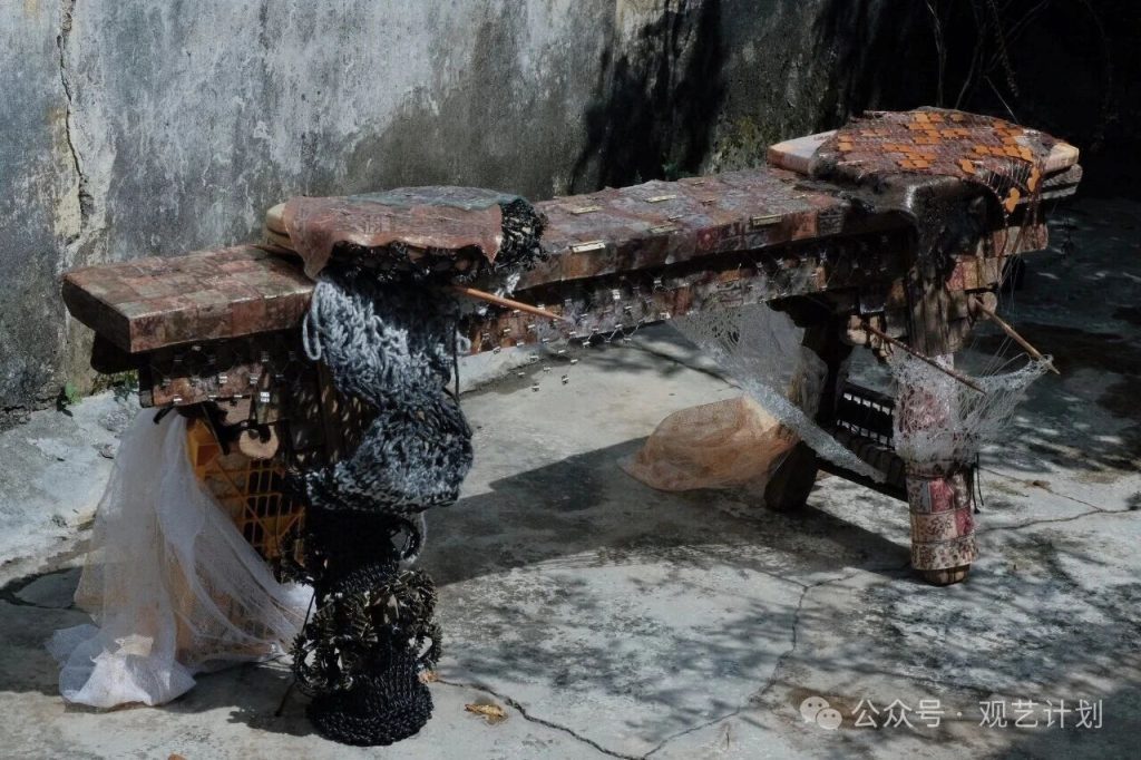 Wenhui Lei has long focused on local communities and socially marginalised groups, working with reclaimed fabrics, wire, wax, and discarded objects. Materials that are “forgotten, replaced, or dismantled” are reassembled by her into new structures.