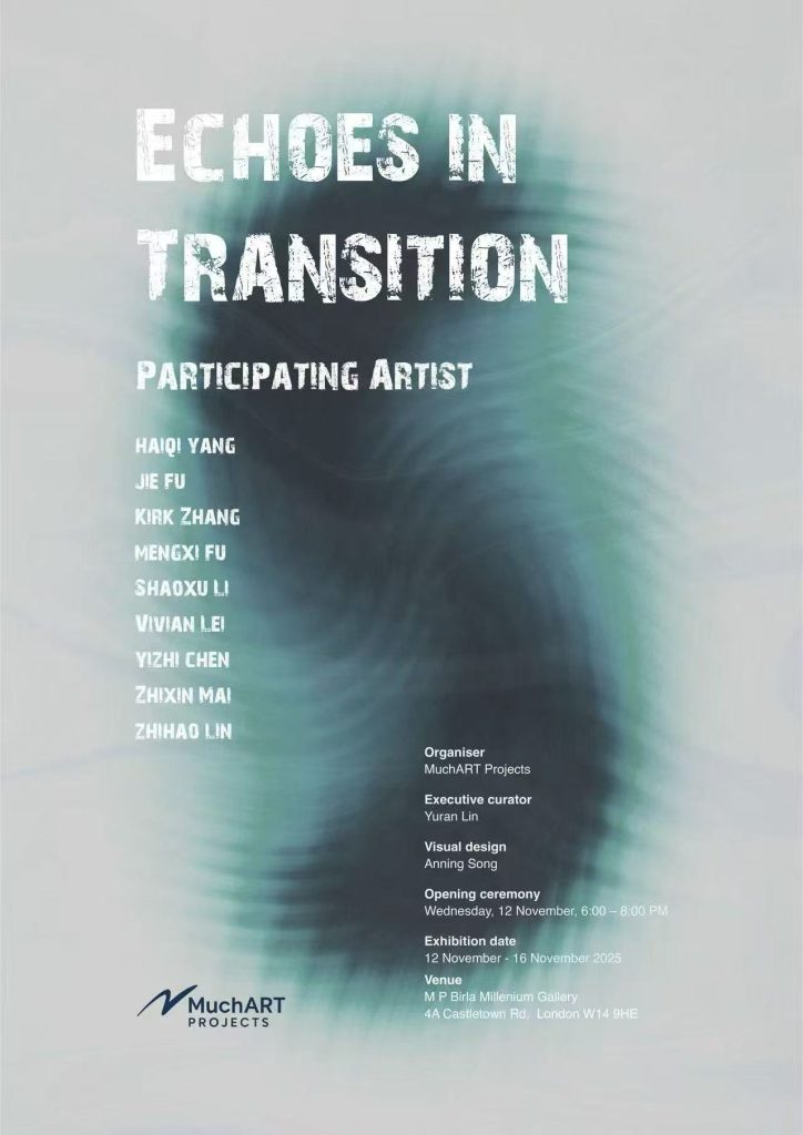 Presented by MuchART Projects, Echoes in Transition—its first group exhibition of emerging Chinese artists—opened on 12 November 2025 at M P Birla Millennium Gallery in London. Within this exhibition, “transition” is neither framed as a political label nor as an abstract concept, but as a lived emotional condition: the loss of familiarity, the reconstruction of identity, the adjustment of the self, and the reorientation of one’s way of seeing.